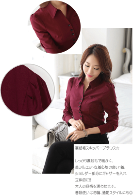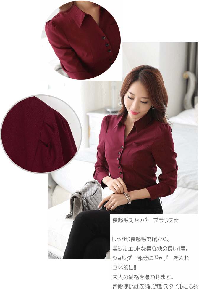 【透け感】なし 【伸縮性】あり 【裏地】あり 裏起毛スキッパーブラウス☆