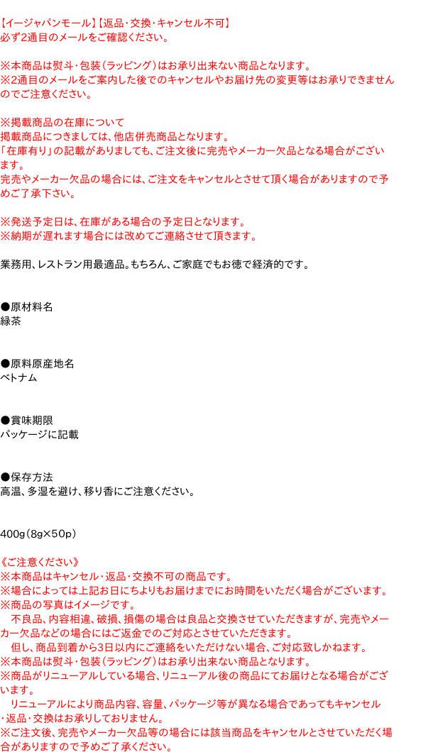400g(8g×50p)【メーカー・製造または販売元】株式会社宇治森徳0120-357-002【広告文責】株式会社イージャパンアンドカンパニーズ 072-875-6666《ご注意ください》 ※本商品はキャンセル・返品・交換不可の商品です。